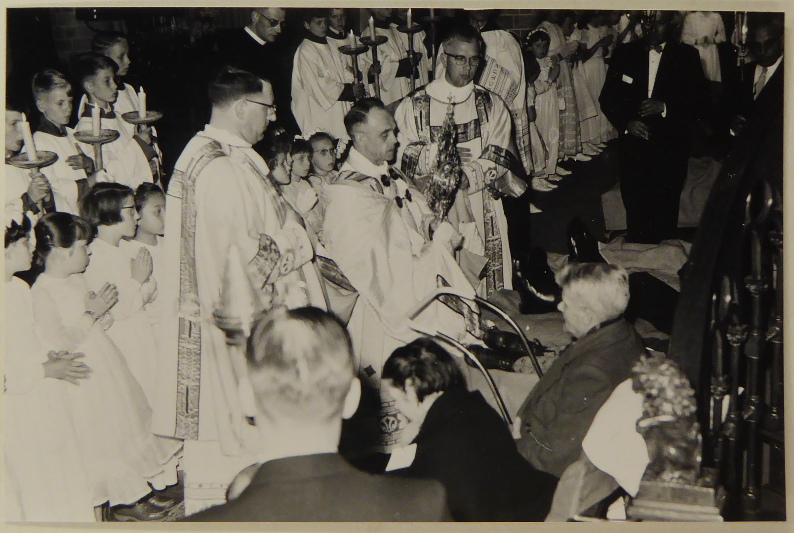 H. Mis in de Monicakerk te Utrecht met prior Gelsing, knielende met monstrans