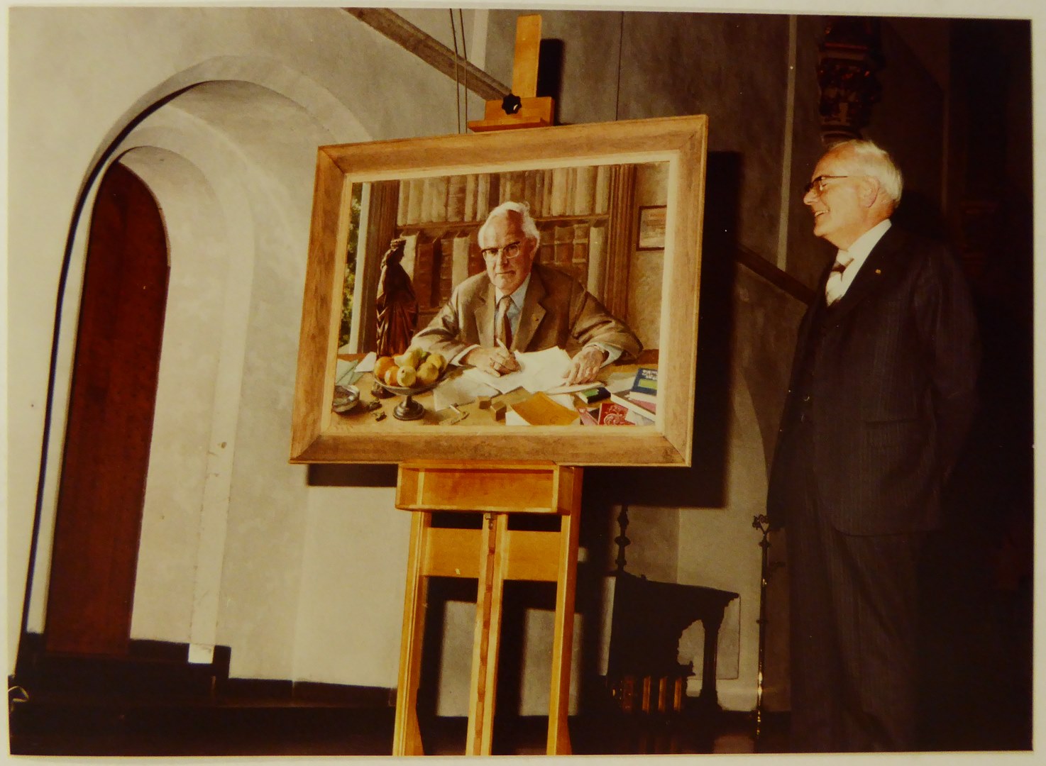 D.P.R.A. Bouvy en zijn door H. Rol geschilderd portret (StCC s14) bij afscheid als directeur RMCC op 28 januari 1981