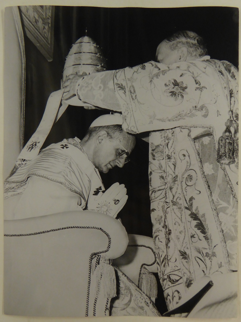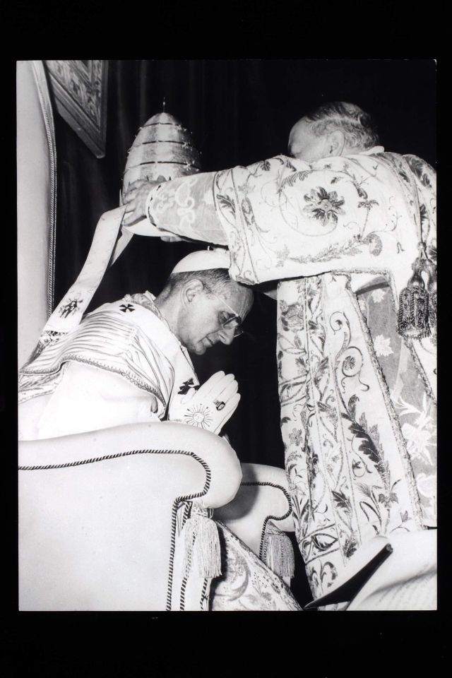 Kardinaal Ottaviani kroont paus Paulus VI met de tiara, 1963