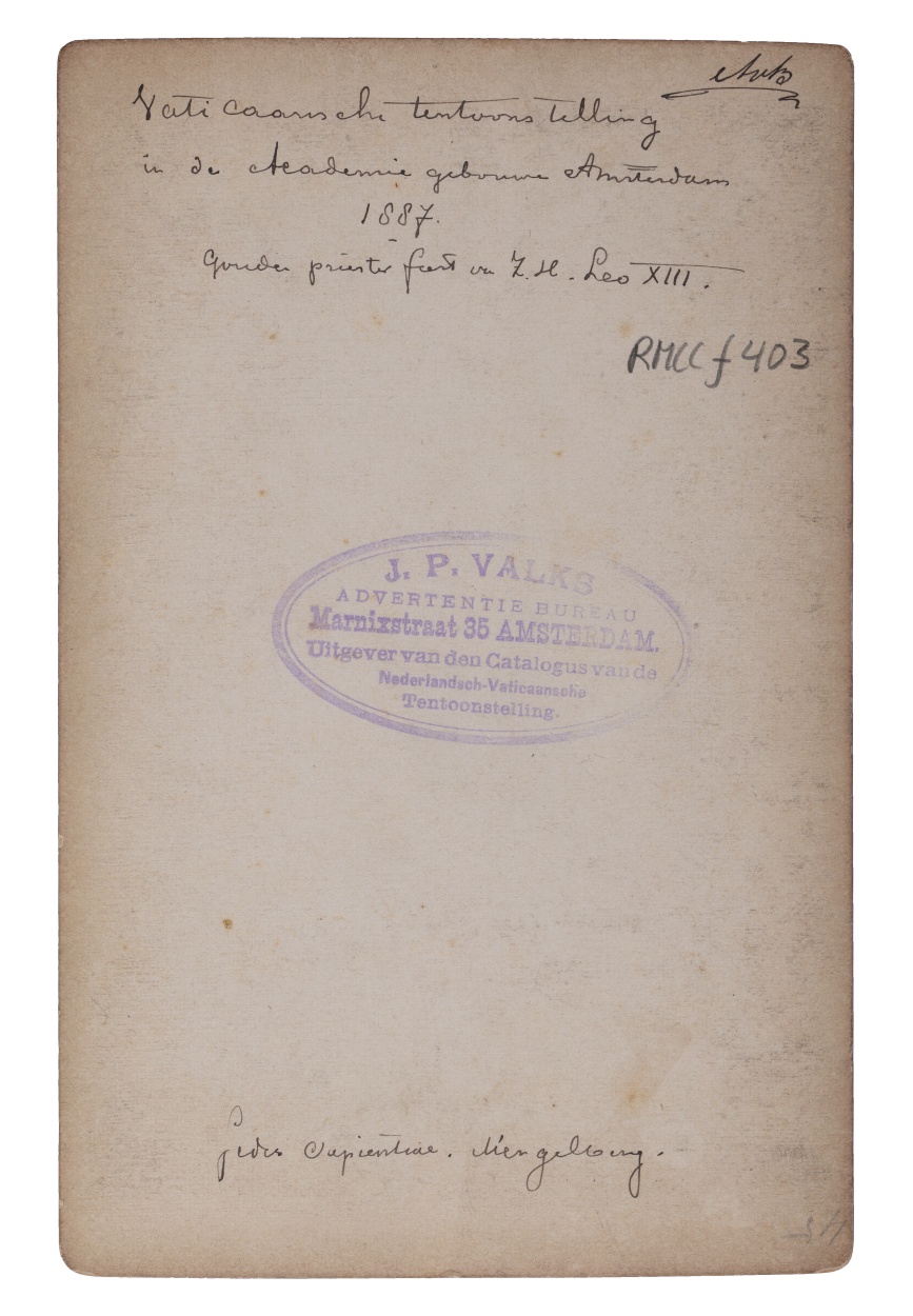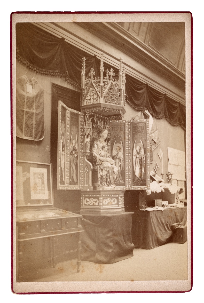 Vaticaansche tentoonstelling in de Academiegebouwen Amsterdam 1887, gouden priesterfeest Leo XIII: beeld van Maria met kind (Sedes Sapientiae) van W. Mengelberg