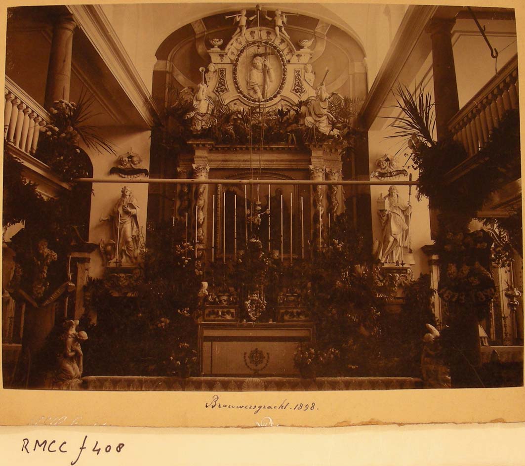 Amsterdam, interieur van de kerk aan de Brouwersgracht bij jubileum Mgr. Rinkel, 21-8-1898