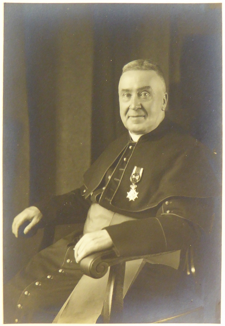 Portret van een zittende geestelijke met opgespelde medaille