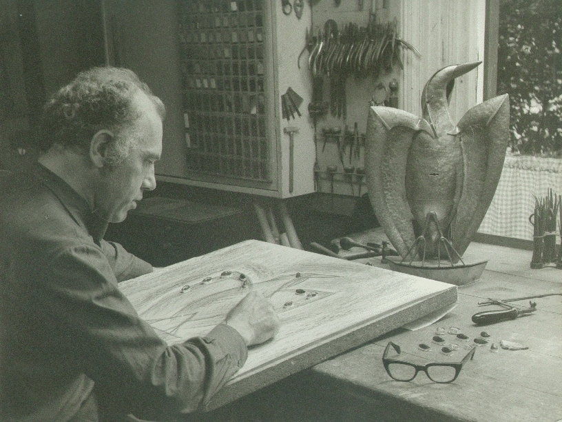 Bob Anink aan het werk in zijn atelier te Blaricum