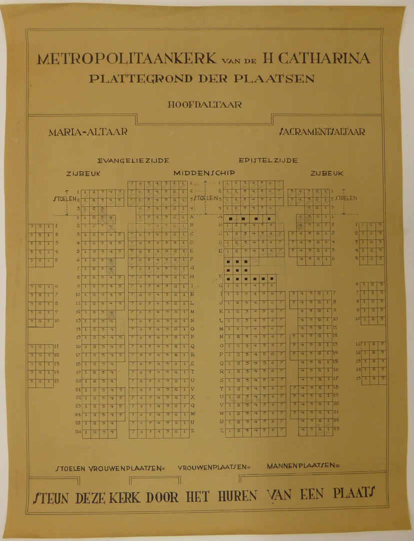 Plattegrond der plaatsen in de Catharinakerk te Utrecht bij de verpachting daarvan