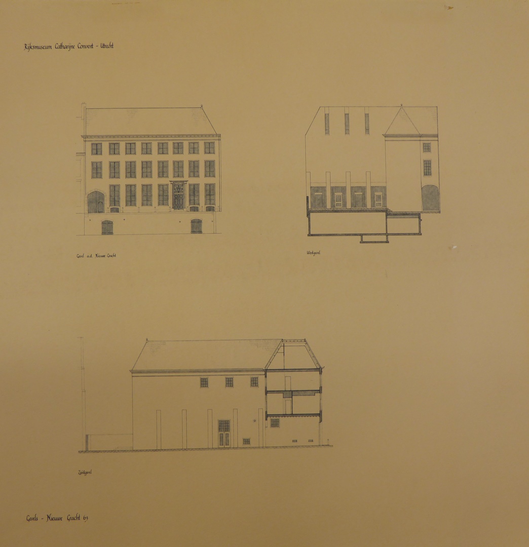 Utrecht, ontwerp Het Catharijneconvent, voorgevel Nieuwegracht 63, westgevel (achtergevel) en zuidgevel (zijgevel)
