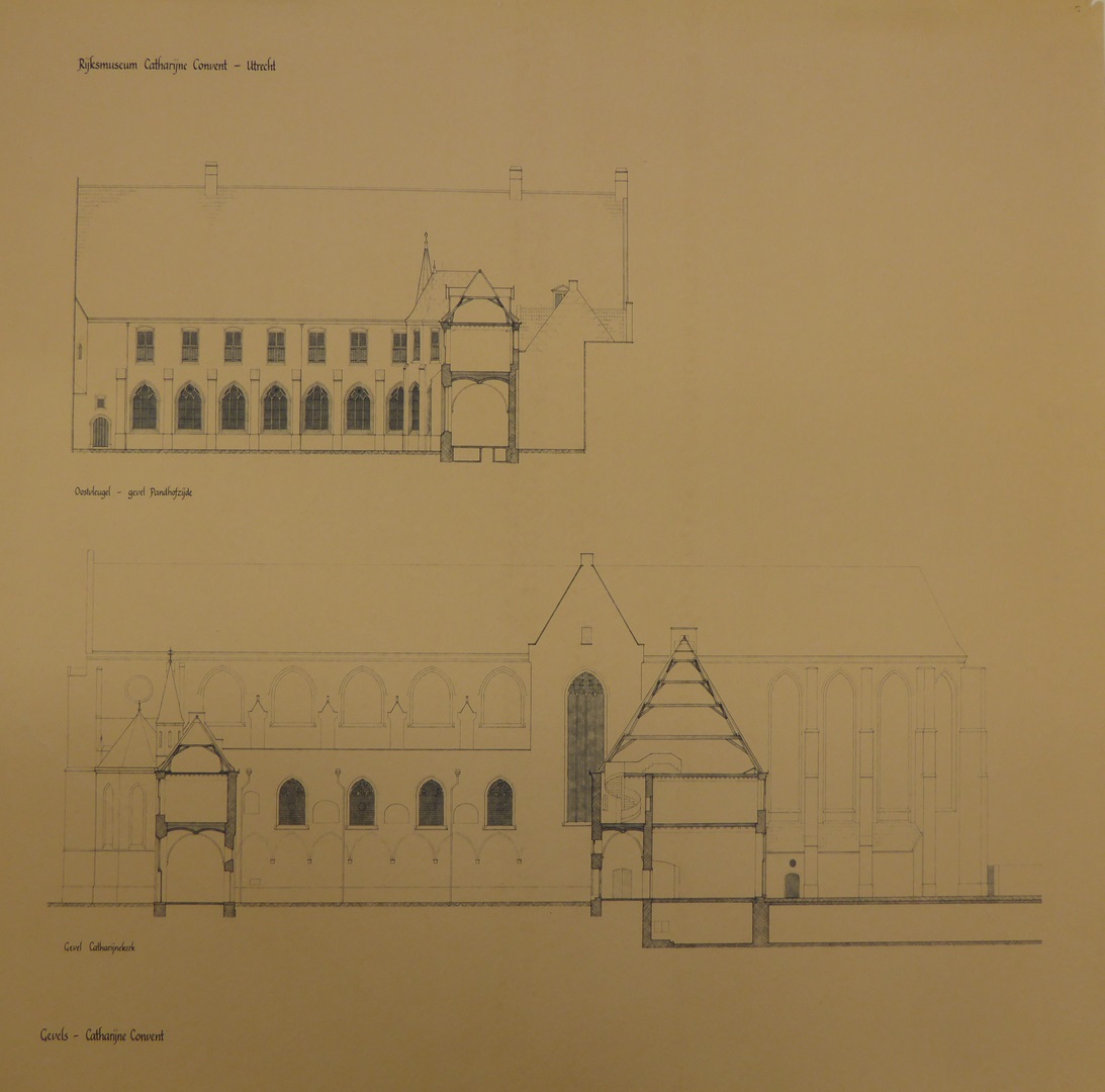 Utrecht, ontwerp Het Catharijneconvent, oostvleugel Pandhof en zuidgevel Catharinakerk