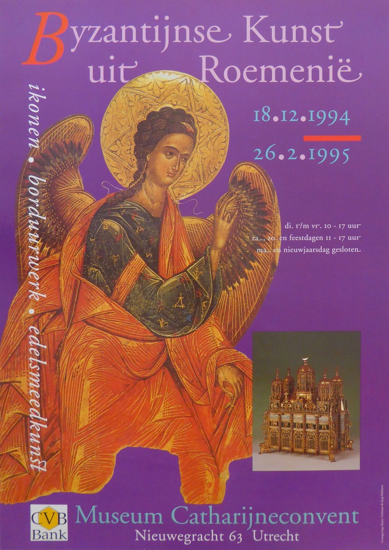 Affiche "Byzantijnse kunst uit Roemenië .. Museum Catharijneconvent", met paneel en reliekschrijn