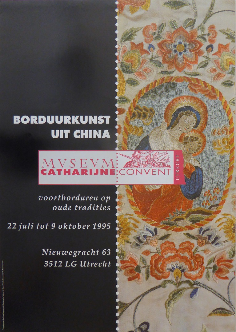 Affiche tentoonstelling Borduurkunst uit China, Museum Catharijneconvent, met Maria met kind
