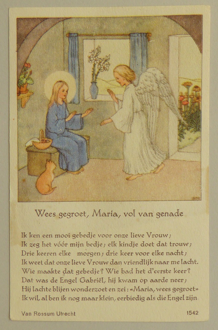 Kinderprent, nr. 1542, met "Wees gegroet, Maria, vol van genade ..."