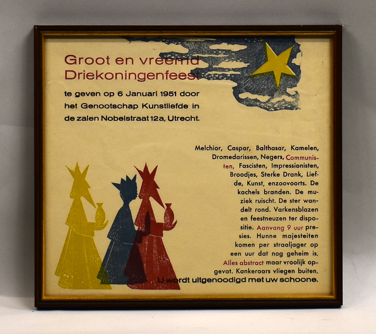 Uitnodiging voor "Groot ... Driekoningenfeest ... Genootschap Kunstliefde in ... Utrecht ..."