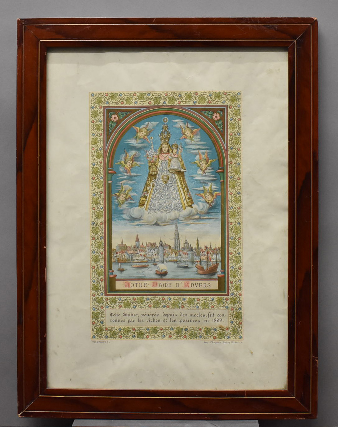 Onze Lieve Vrouw van Antwerpen met stadsgezicht en met "Cette Statue, ... et les pauvres en 1899"
