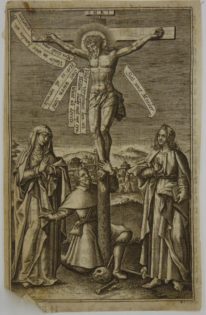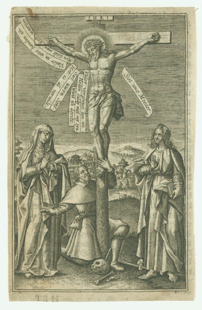 Christus aan het kruis met de zeven kruiswoorden, blad uit boek