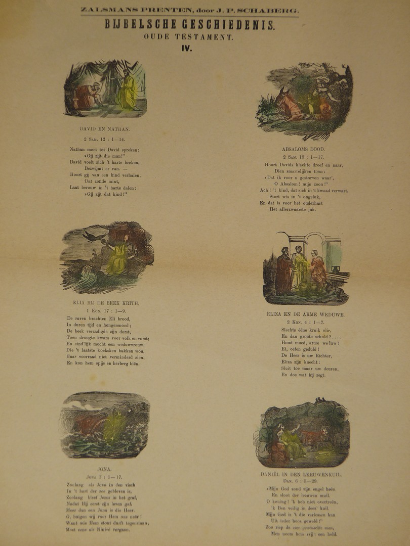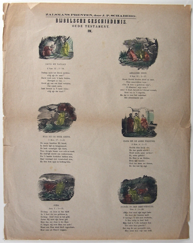 Bijbelsche geschiedenis oude testament IV: David en Nathan, Absaloms dood, Elia bij de beek Krith, Eliza en de arme weduwe, Jona, Daniël in den leeuwenkuil