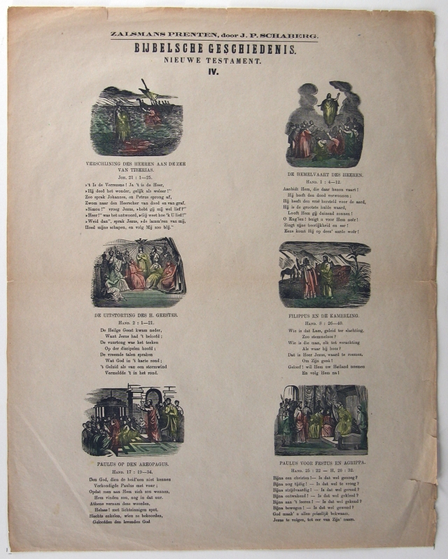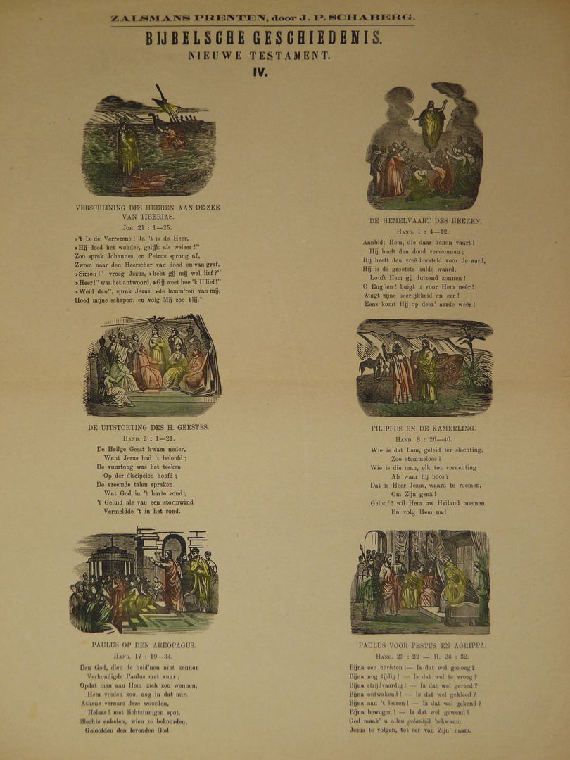 Bijbelsche geschiedenis nieuwe testament IV: verschijning des Heeren aan de zee van Tiberias, de hemelvaart des Heeren, de uitstorting des H. Geestes, Filippus en de kamerling, Paulus op den Areopagus, Paulus voor Festus en Agrippa
