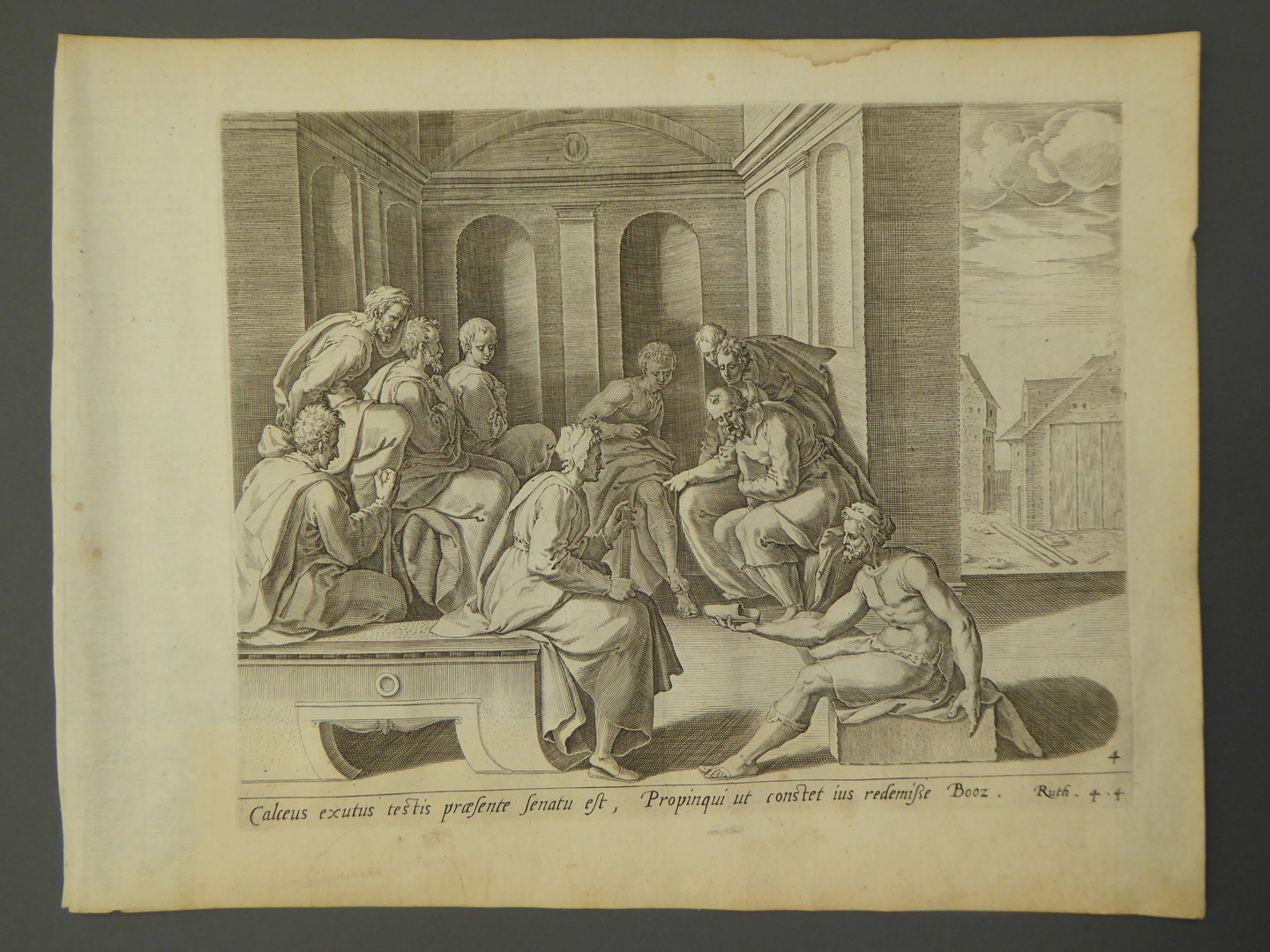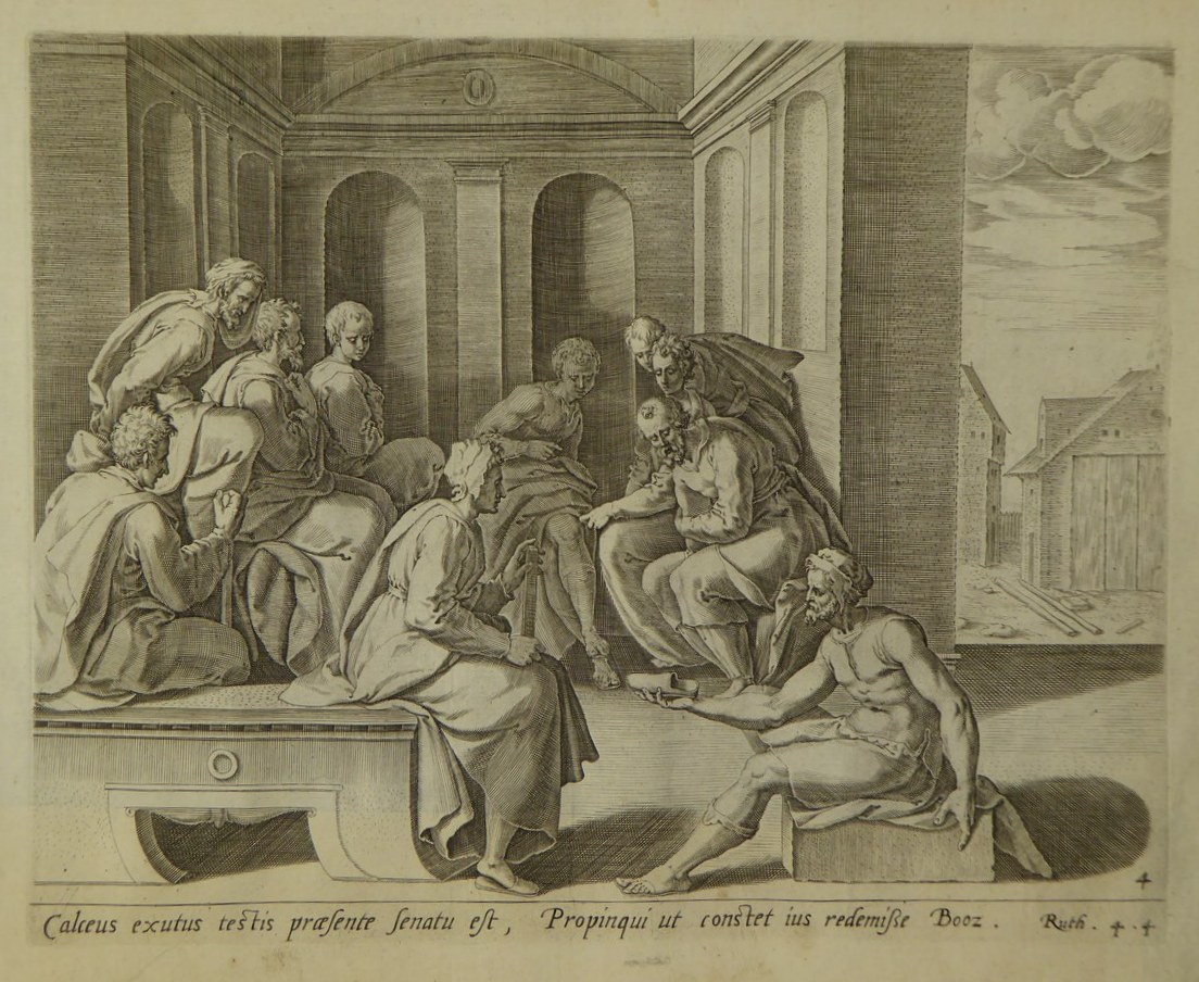 Boaz ontvangt bij de stadspoort de sandaal van een man die net als Boaz het recht heeft om het land van Ruth en Naomi te kopen. De man toont hiermee dat hij zijn recht niet laat gelden. Een groep stadsoudsten is getuige van de koop en van Boaz' belofte om met Ruth te trouwen. Onder ...