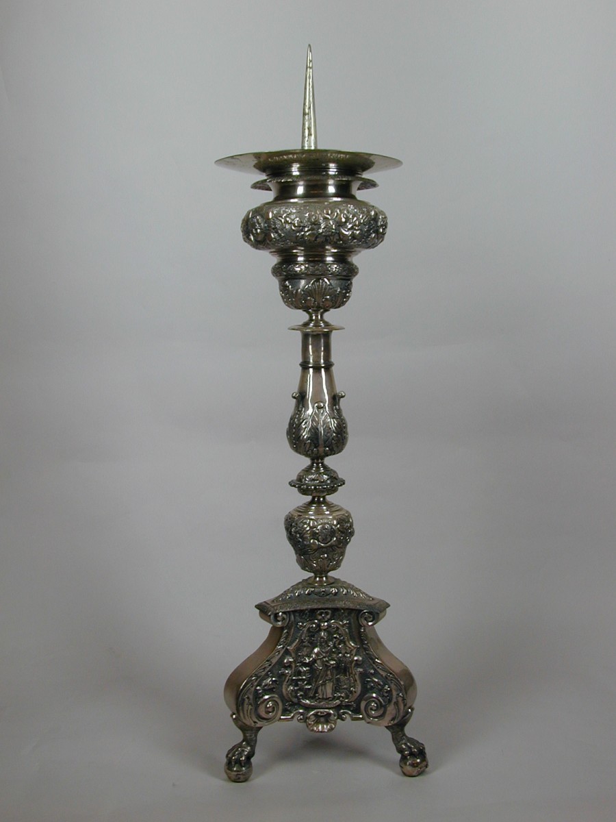 Kandelaar op drie klauwpoten met HH. Paulus, Bonifatius en Hieronymus