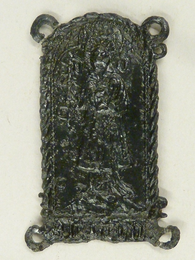 Pelgrimsteken, plaquettevormig, met St. Leonardus, Dudzele, afgebeeld als diaken met nimbus