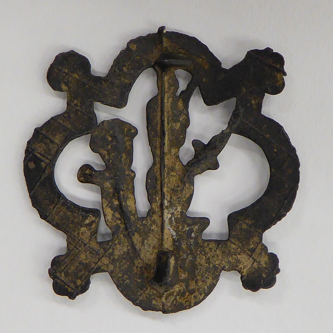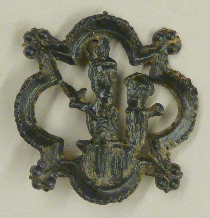 Pelgrimsinsigne, opengewerkt, met Maria met kind, in de vorm van een vierpas