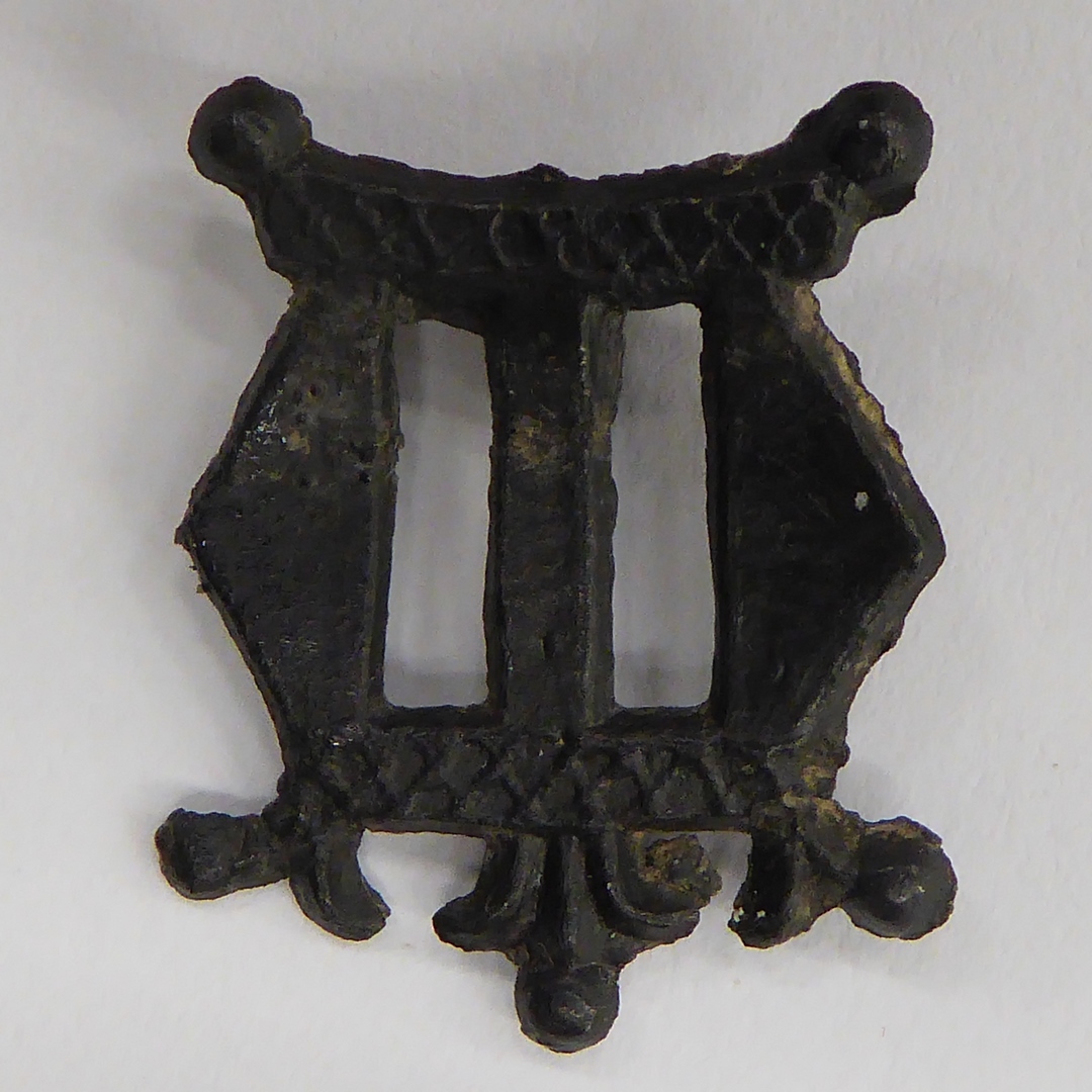 Insigne in vorm van gekroonde M, kroon bestaat uit drie Franse lelies