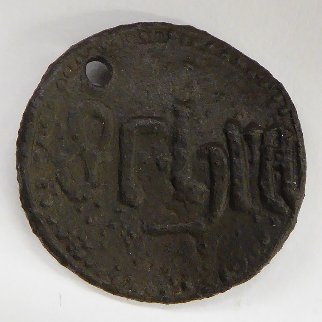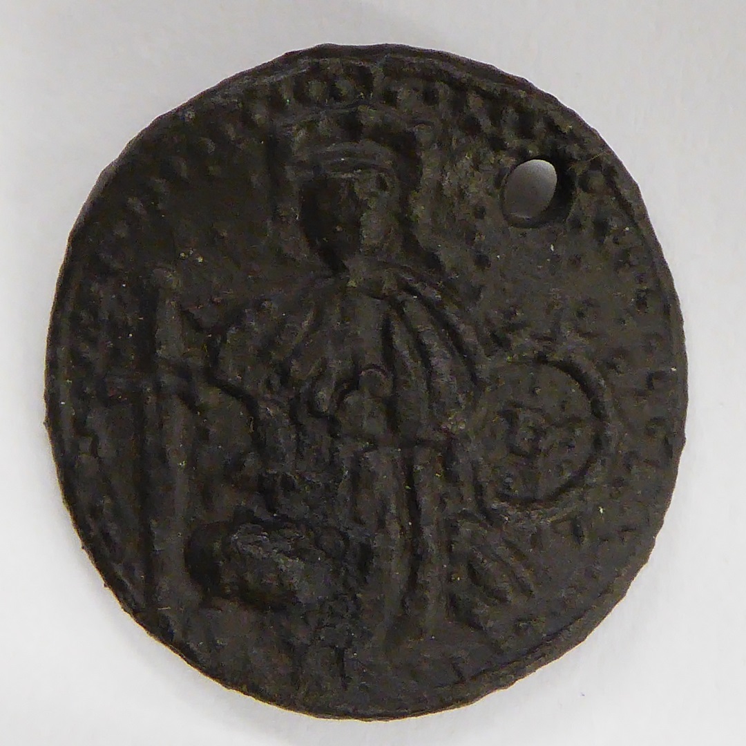 Pelgrimsteken, rond, gesloten, met St. Catharina met zwaard, rad en doktershoed