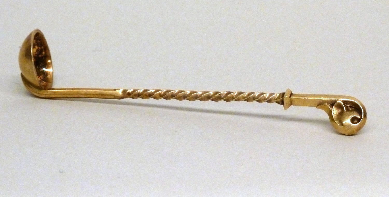 Kelklepeltje met deels gedraaide steel eindigend in dichte krul