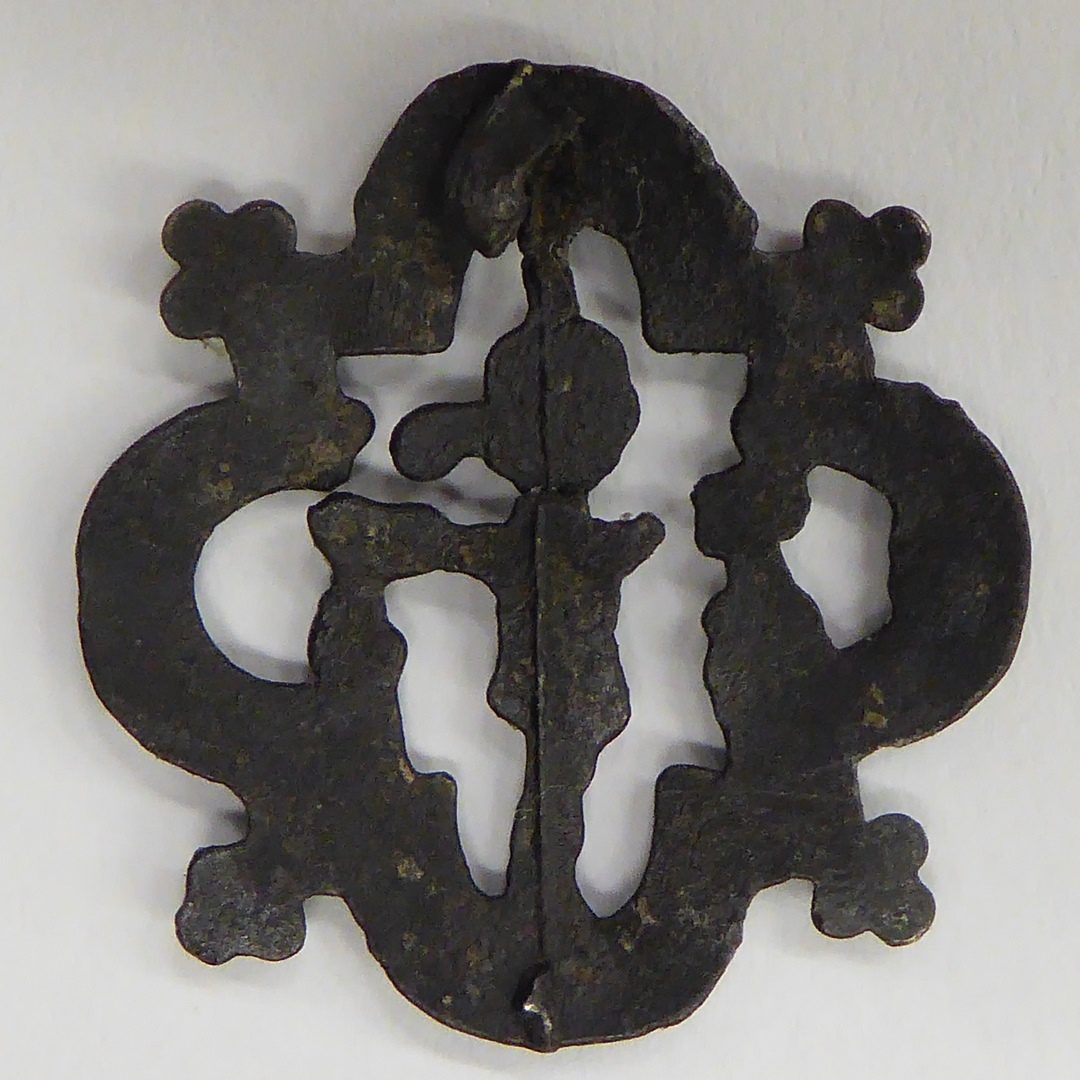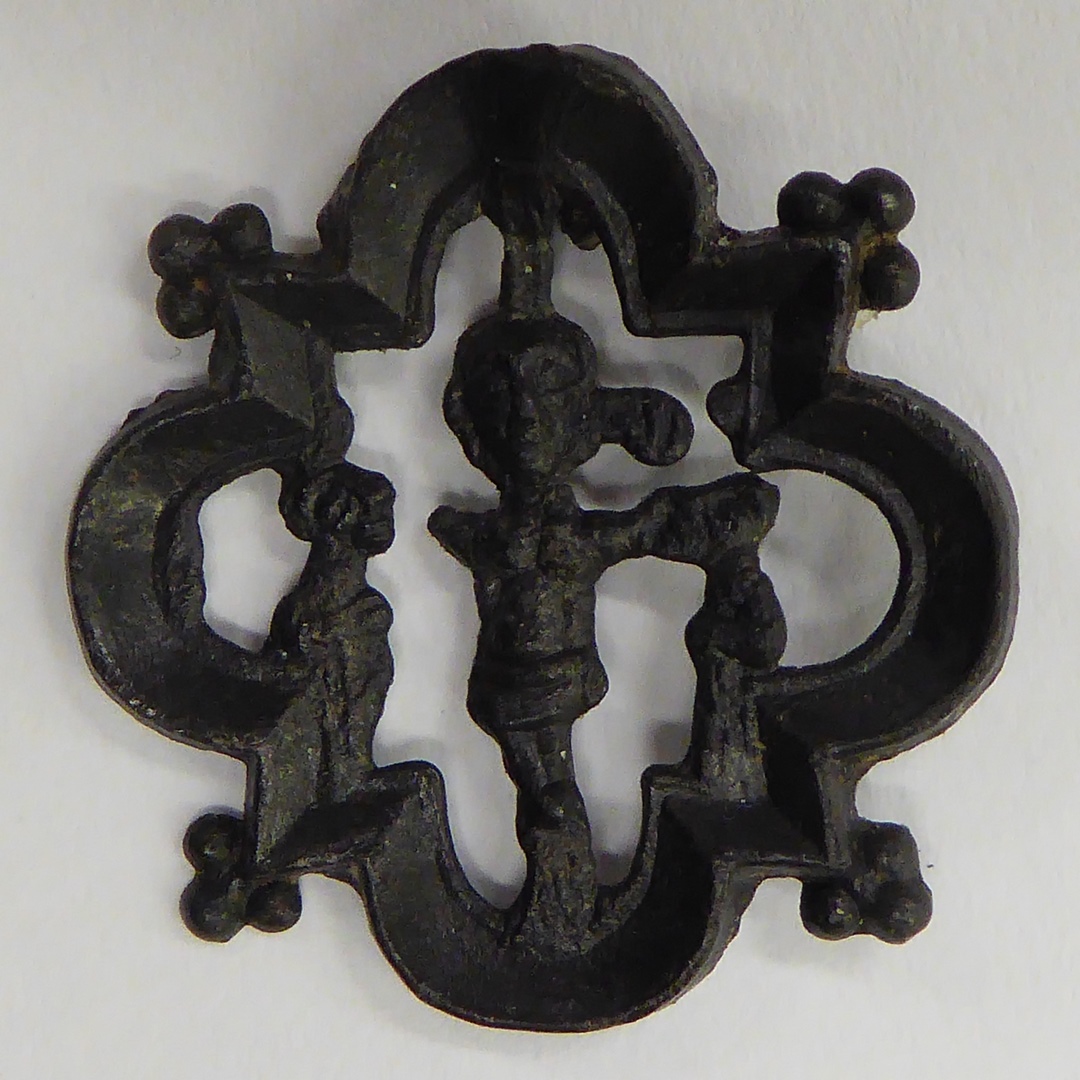 Pelgrimsteken, vierpas, opengewerkt, met calvarie-voorstelling