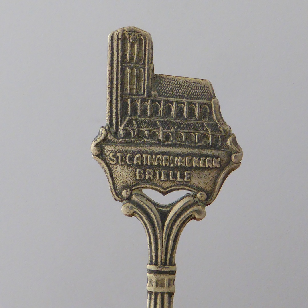 Theelepel met "Brielle St. Catharijnekerk" met kerkgebouw