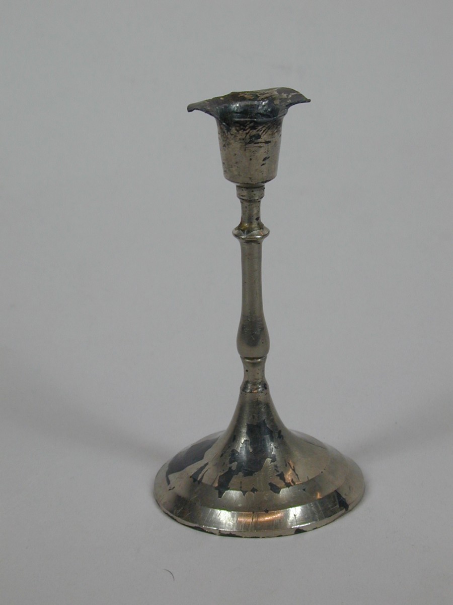 Zilverkleurige kandelaar met balustervormige stam