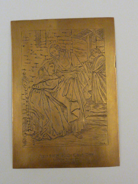 Sierplaatje met "Jezus neemt afscheid van Zijne heilige Moeder."