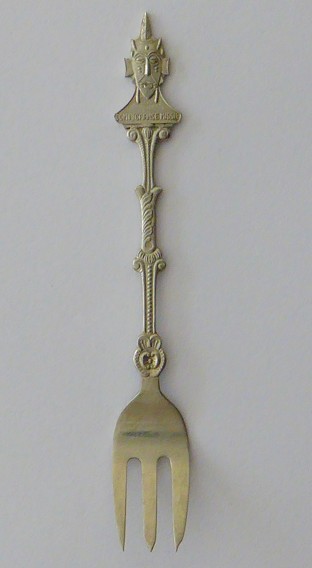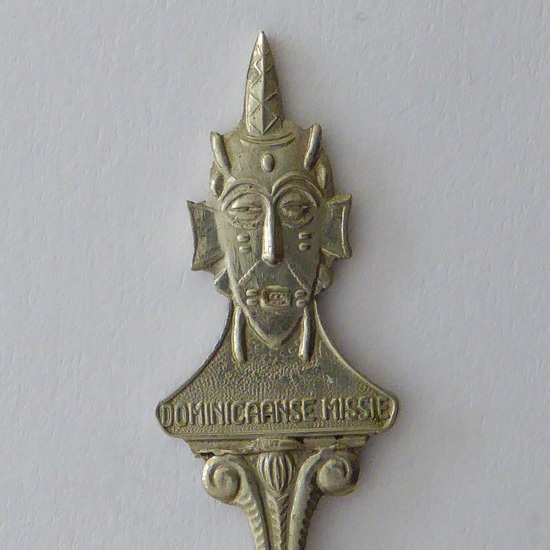 Gebaksvork met "Dominicaanse missie" met Afrikaans masker (Kameroen?)