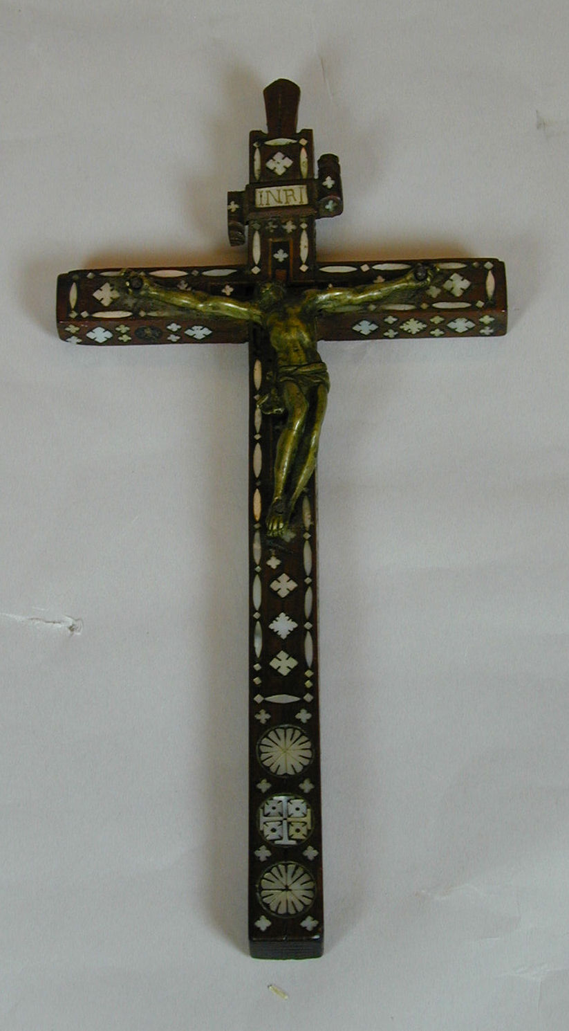 Kruis ingelegd met parelmoer met koperen corpus