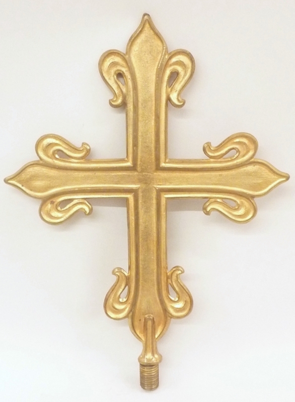 Vaandelbekroning op schroefdraad, kruis met gekrulde uiteinden