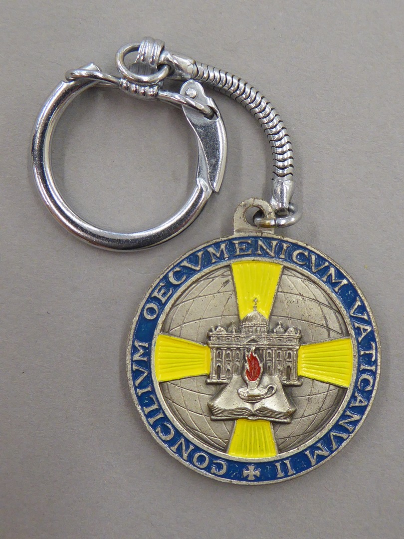 Sleutelhanger Tweede Vaticaans Concilie met St. Pieter, kz. portret Johannes XXIII en Paulus VI