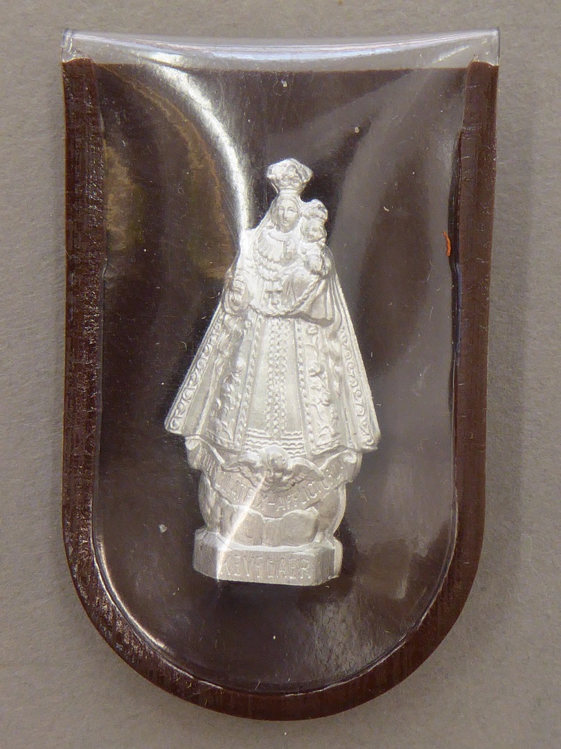 Zakheiligdom, beeldje voorstellend Maria van Kevelaer, in plastic hoesje