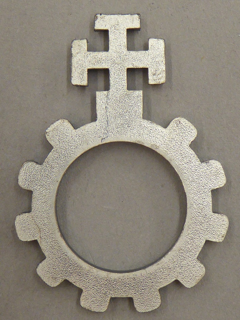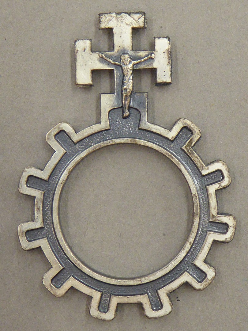 Vingerrozenkrans, radvormige ring waarop kruisbeeld, met rechthoekige weesgegroeten