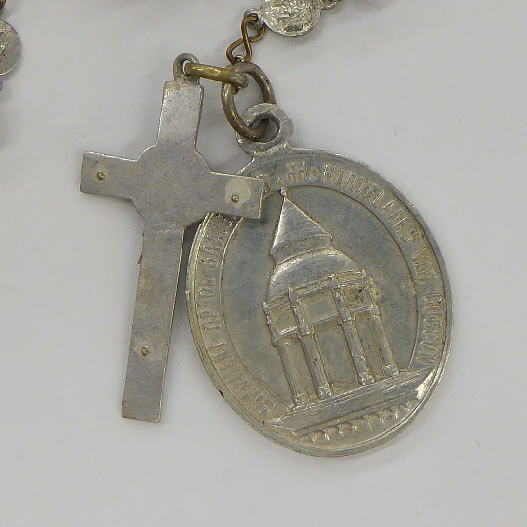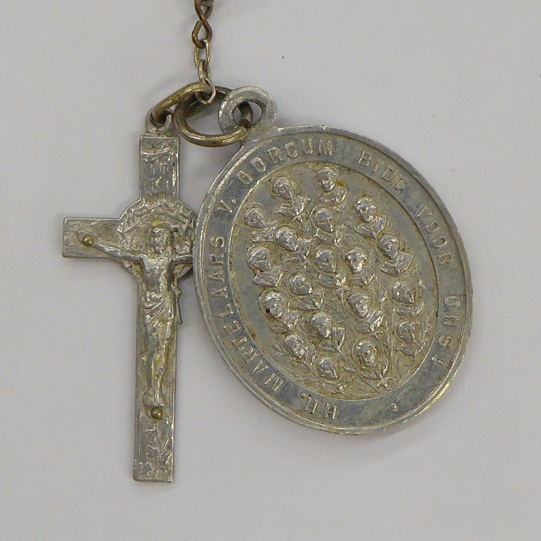 Metalen rozenkrans met kruisje en hanger met de HH. martelaars van Gorcum, kz. monument