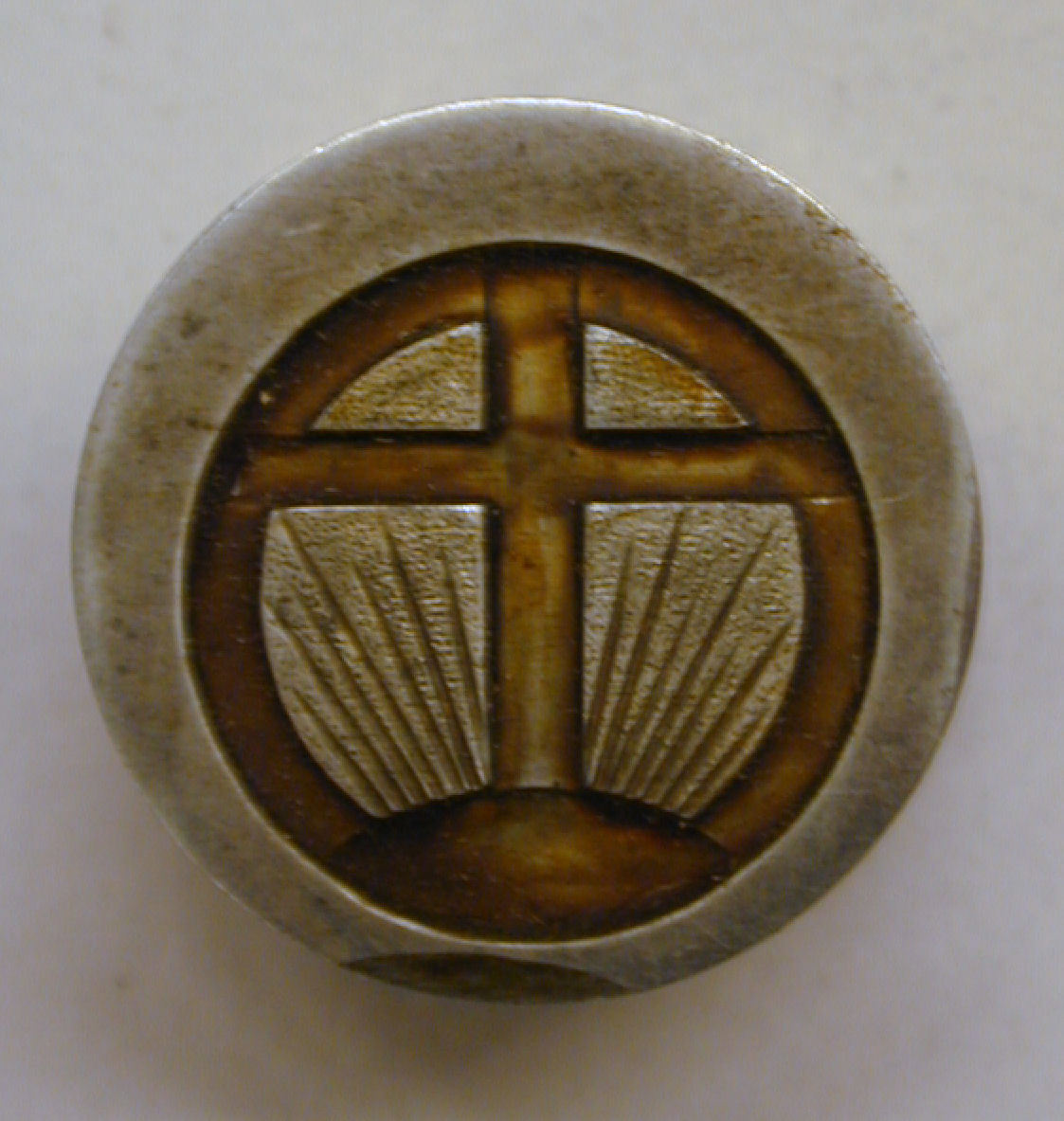 Stempel voor rond Christus Koning speldje met kruis en opgaande zon