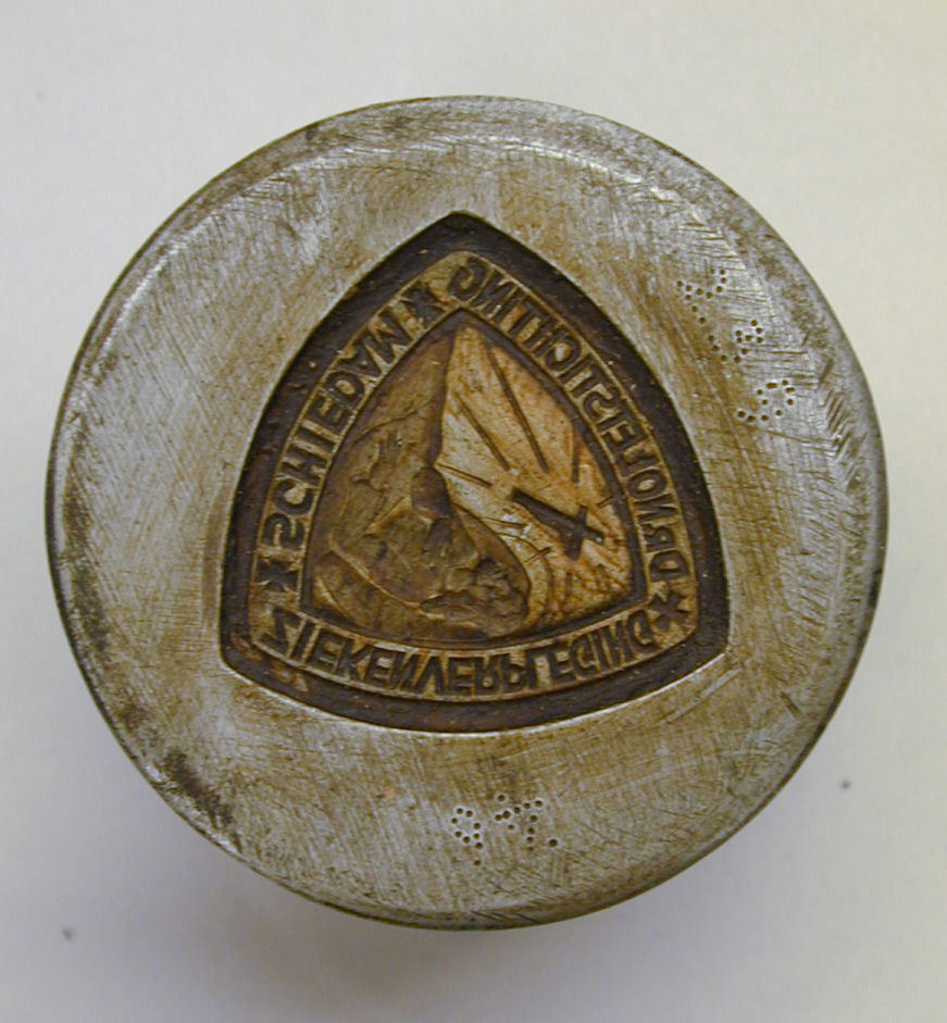 Stempel voor personeelsbadge "Ziekenverpleging Dr. Noletstichting" met H. Lidwina van Schiedam