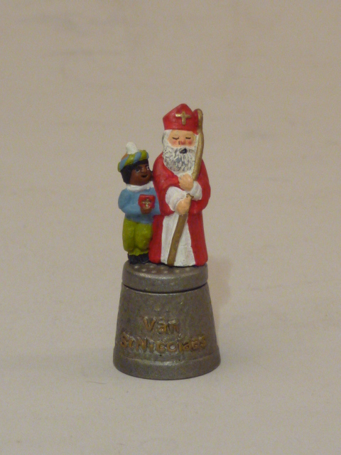 Vingerhoed met los dopje met Sint Nicolaas en Zwarte Piet en met "St. Nicolaas"