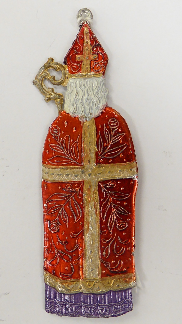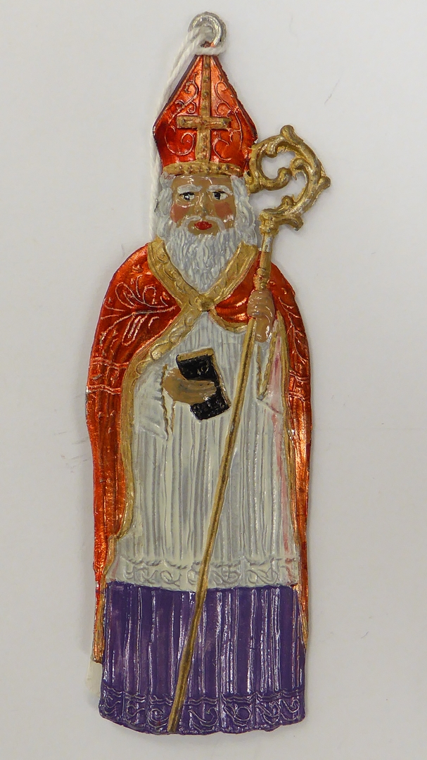 Reliëf met ophangoog in de vorm van Sint Nicolaas met staf en boek