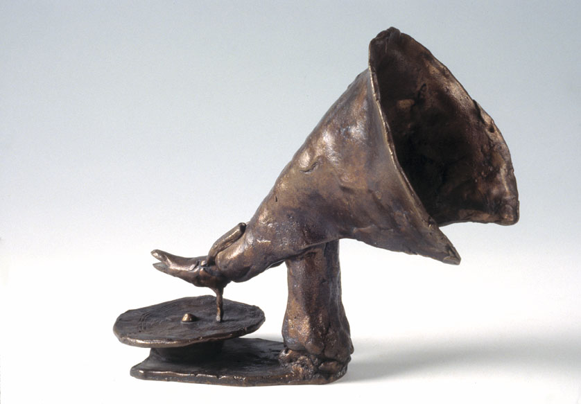 Papafoon, paus Johannes Paulus II buigt zich voorover en bespeelt met de neus de langspeelplaat