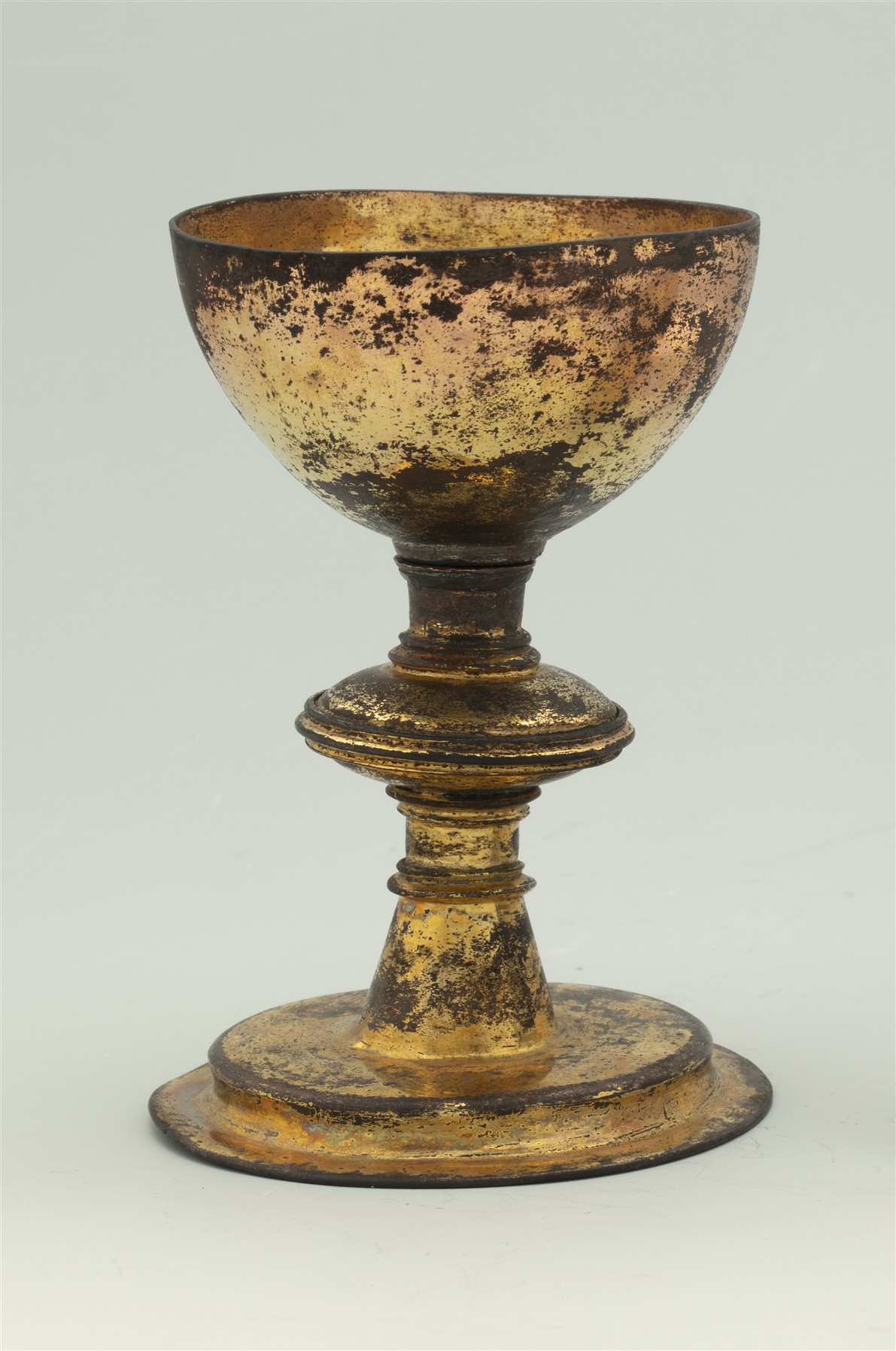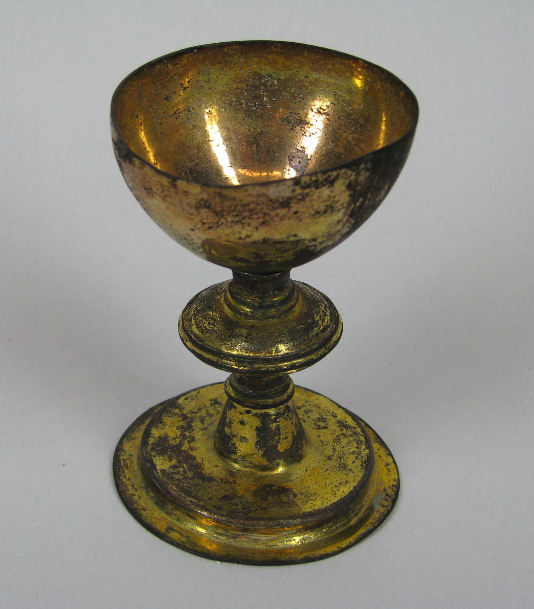 Reiskelk op ronde voet met aan rand trapsgewijze profilering, konische schacht, ronde nodus