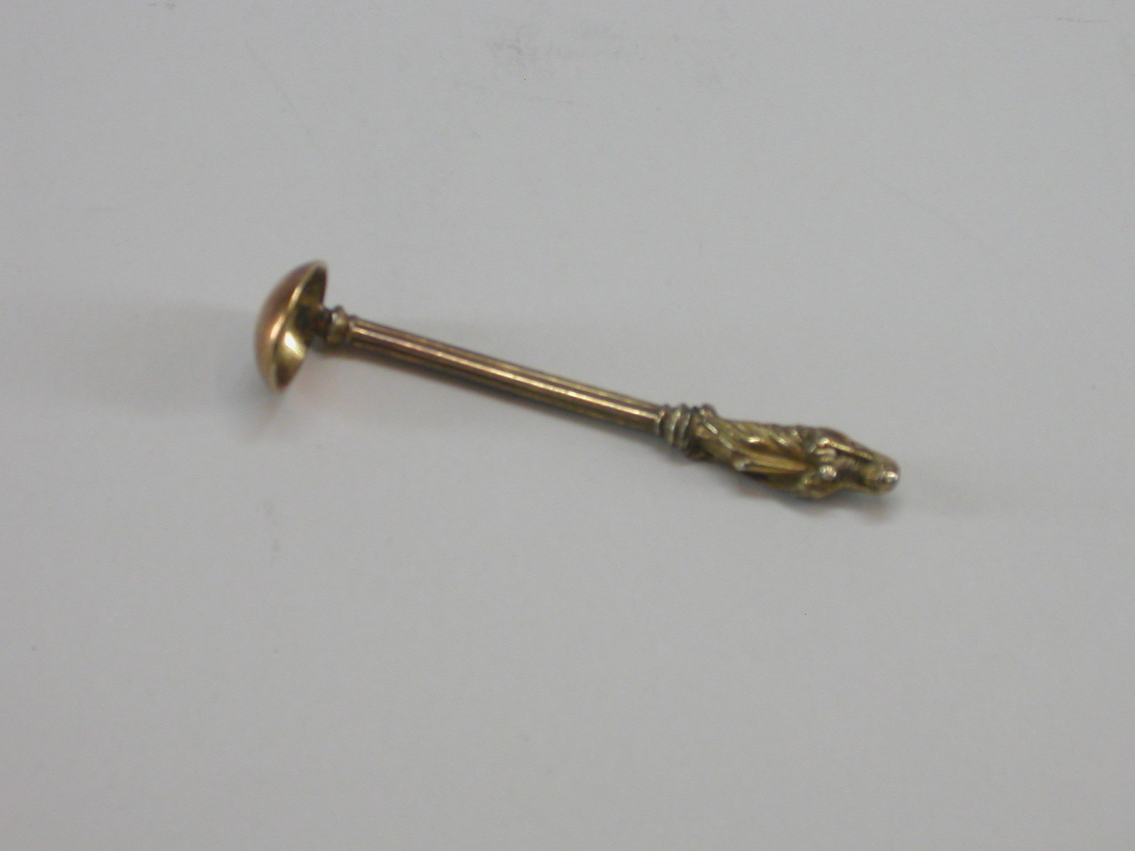 Kelklepeltje met een vrouwfiguur met gevouwen handen