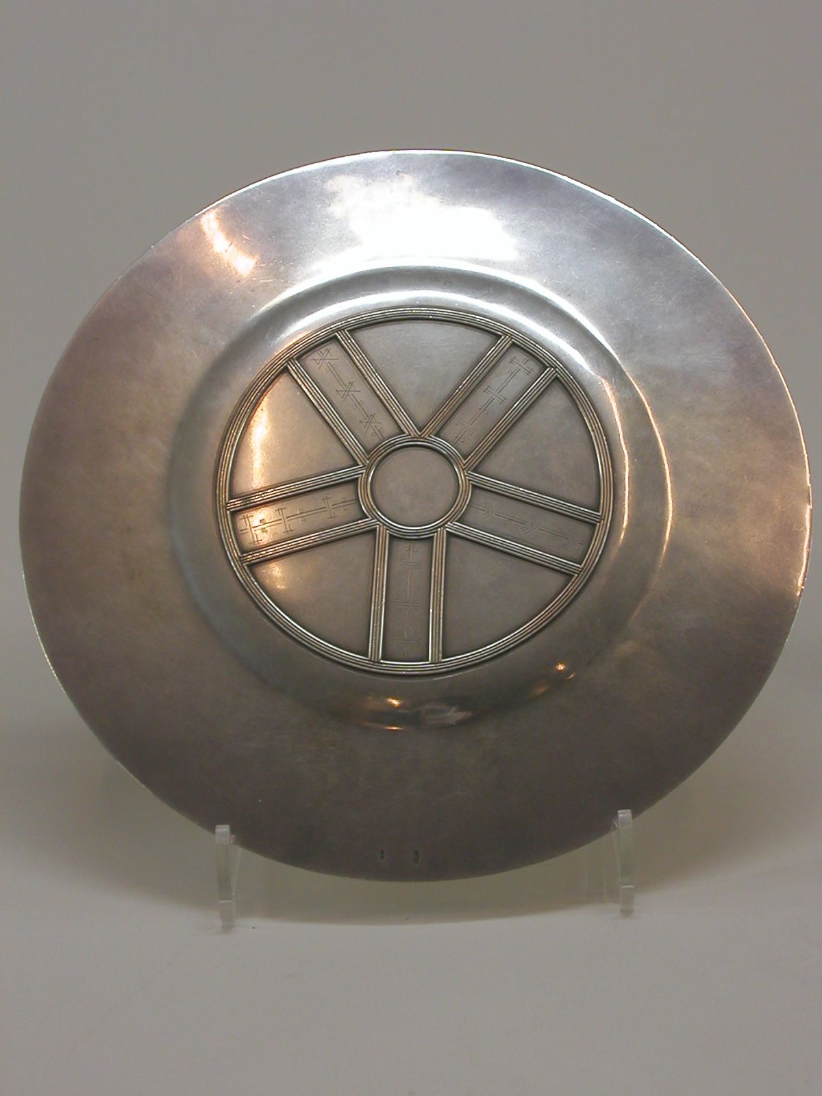 Pateen met op de achterkant graveringen en opgelegde lijnen