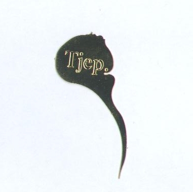 Goudkleurig logo met gestanste signatuur "TJEP.", behorend bij RMCC m655a
