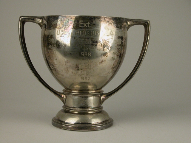 Wisselbeker hockey 1936-1961, met "... geschenk van R.P.V. Esser. s.j. Praep Prov Neerl Katwijk 1948 ..." en met "Aloysius 1944 ... Canisius 1936 ... Ignatius 1940 ..."