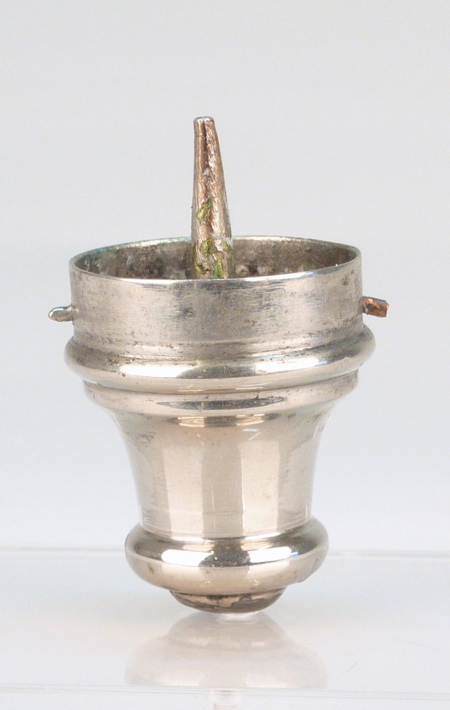 Deel van processiekandelaar: kaarsenpen in vetvanger