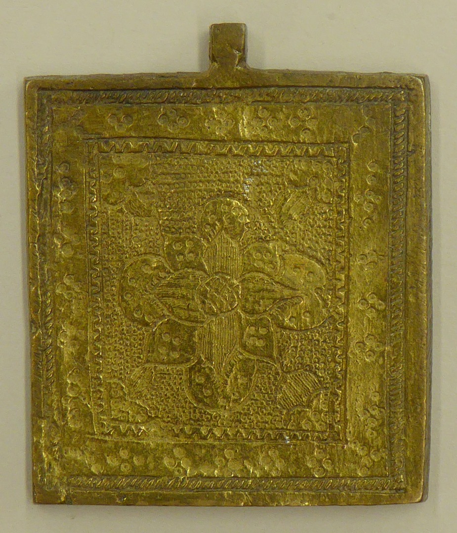 Onbekende monnik Johannes, HH. Kosmas en Damianus, staand naar links, op achterzijde een bloem
