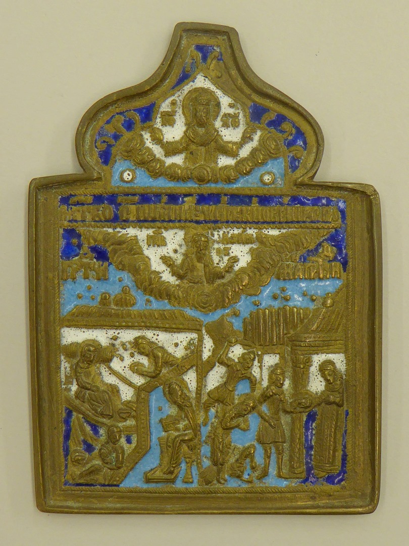 Johannes de Voorloper (Doper), geboorte en onthoofding, met in de koepel zegenende Christus als Koning der Koningen