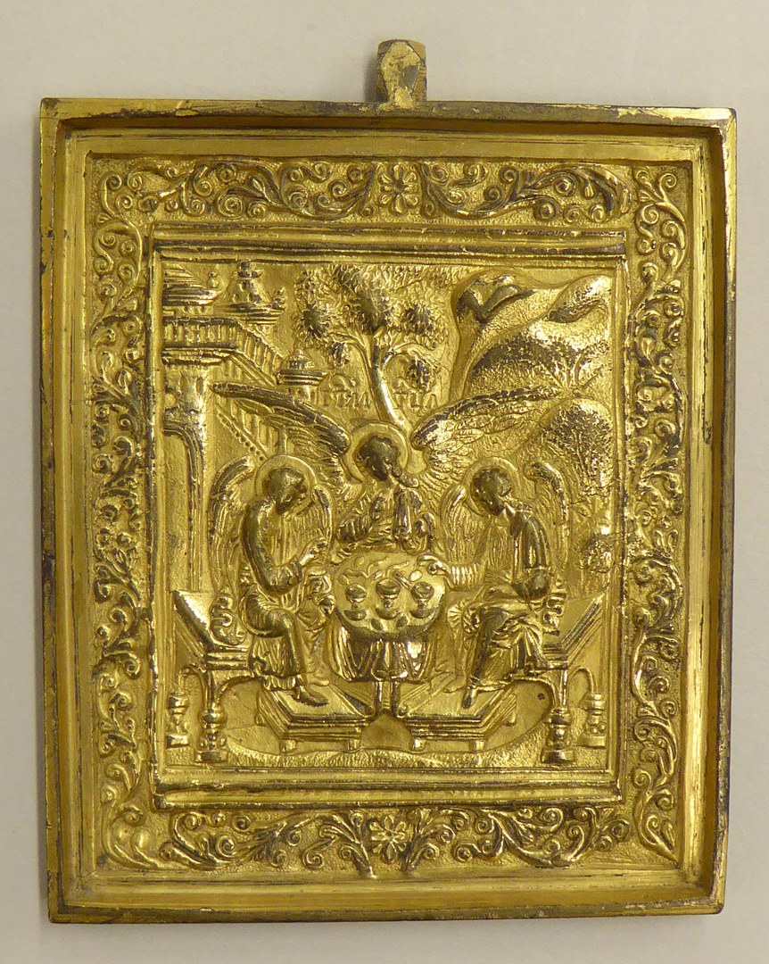 Oudtestamentische Triniteit, drie engelen zittend aan tafel
